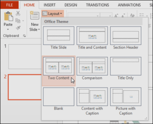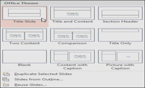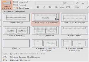 - To change the layout of an existing slide, click the Layout command, then choose the desired layout.