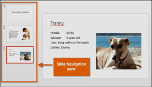 - Move slides: It’s easy to change the order of your slides. Just click, hold, and drag the desired slide in the Slide Navigation pane to the desired position.