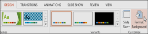 By default, all slides in your presentation use a white background. It’s easy to change the background style for some or all of your slides. Backgrounds can have a solid, gradient, pattern, or picture fill.
